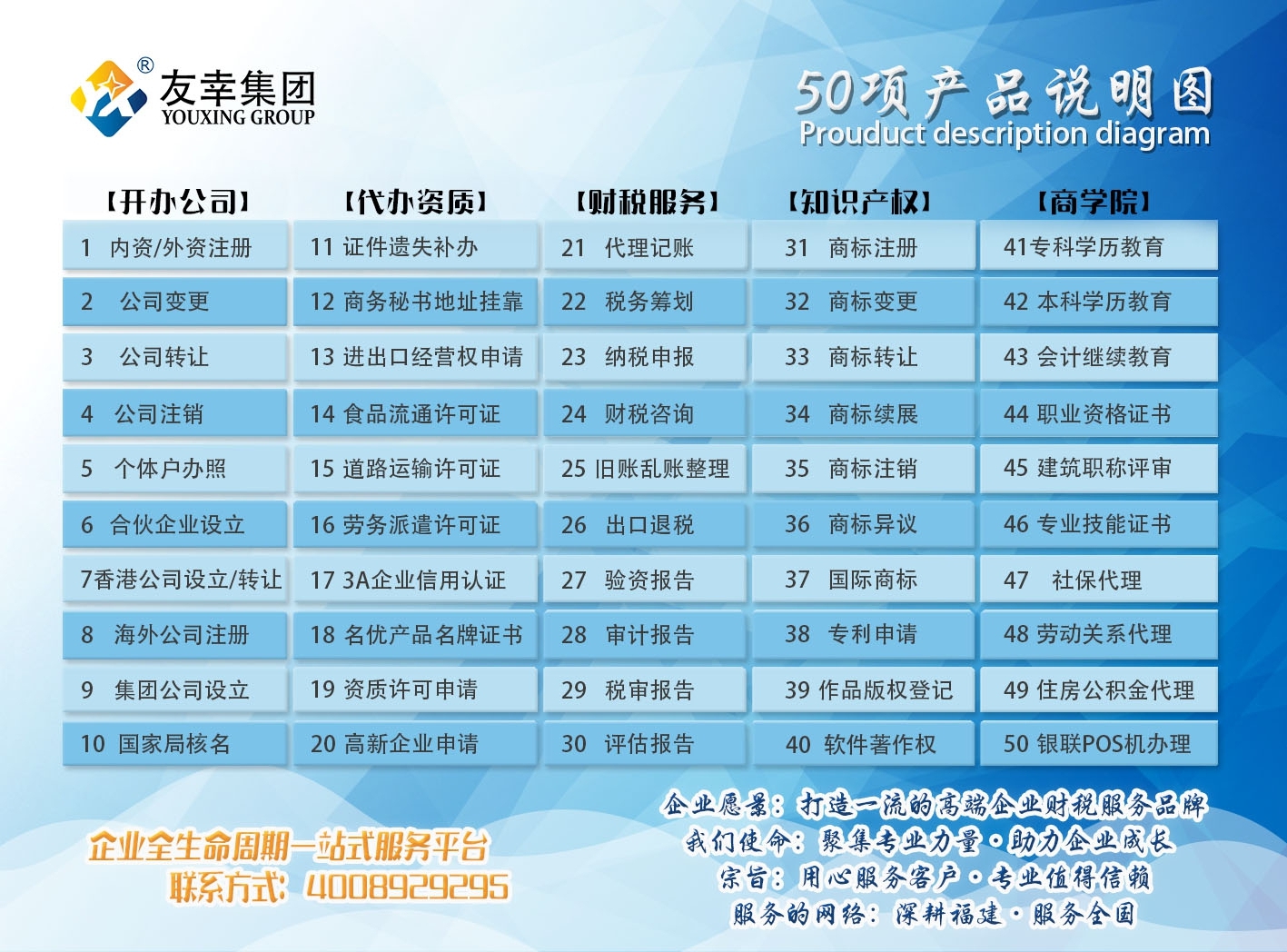 福建友幸企業(yè)管理集團(tuán)有限公司是一家專門為企業(yè)提供高端財(cái)稅綜合服務(wù)集團(tuán)。